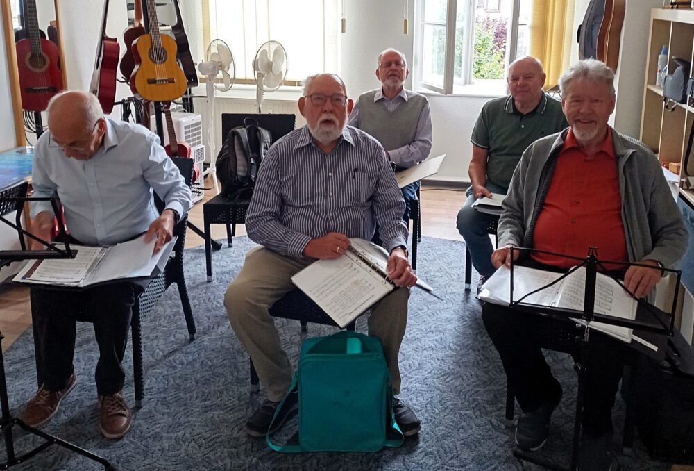 Und weil Ostern eine Probe entfällt, versammelte sich heute, am Samstag, 05.04.2025, ein großer Teil des Chores um unsere Dirigentin Saskia Sellnau zur intensiven Probe in der „Villa Mosaik“.