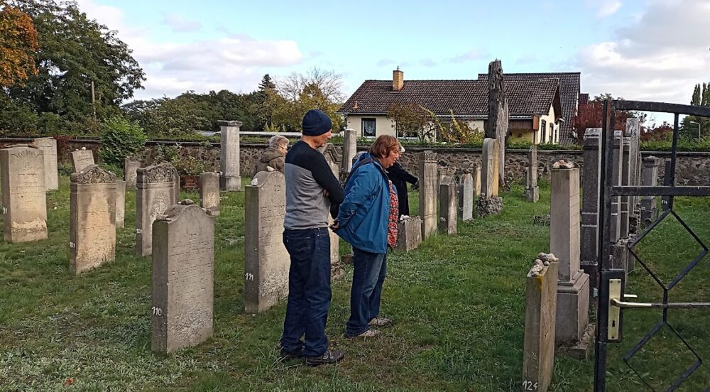 Zum Mittagessen kehrten wir ins italienische Restaurant „al dente“ in Wriezen ein. Es folgte ein interessanter, teilweise auch abenteuerlicher Rundgang durch die Stadt, dabei war auch der ehemalige jüdische Friedhof.