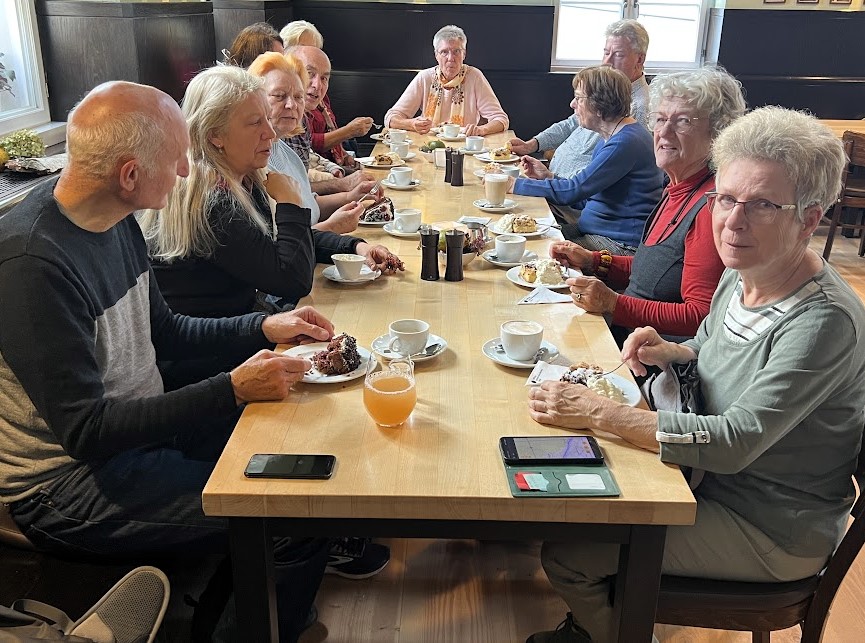 Leider konnten einige erkrankte Mitglieder nicht teilnehmen, so dass wir schließlich eine kleine, aber feine Gruppe von elf Personen waren. Um 11 Uhr trafen wir uns am Museum, wo uns nach einer Tasse Kaffee die Leiterin begrüßte und in die Ausstellung einführte. Es folgte eine spannende und eindrucksvolle Führung durch das Museum, den Garten, die Grabkolonaden und die Kirche sowie einem Film von der höchst interessanten dreijährigen Weltreise Chamissos.